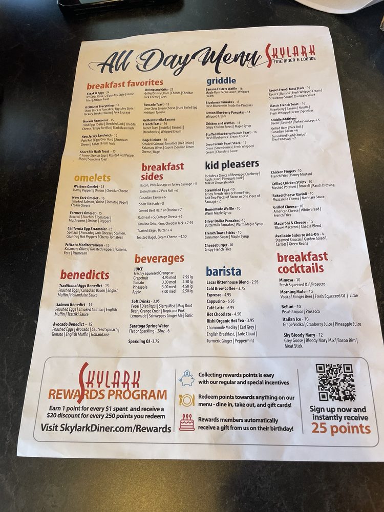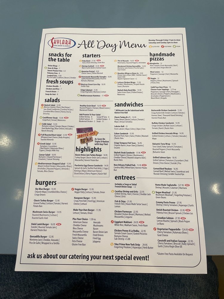 Skylark Diner & Lounge in Edison, NJ is a versatile dining spot offering a range of amenities such as delivery, outdoor seating, and even live music. With a menu that includes creative first courses like the Avocado Spicy Shrimp Tostado and hearty shareable plates like the Blackened Chicken Quesadilla, there's something for everyone. The salads, from classic Caesar to a vibrant Greek Salad, showcase fresh ingredients and bold flavors. The Braised Chicken Empanada stands out with its flavorful chipotle BBQ sauce and pineapple salsa. With options for vegans and vegetarians, Skylark Diner & Lounge is a great choice for groups and families looking for a fun dining experience with a diverse menu.